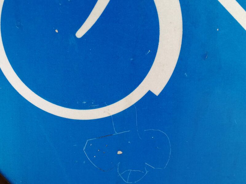3802 - Warnschild Elch (historisch, auf hölzerner Siebdruckplatte), Rückseite